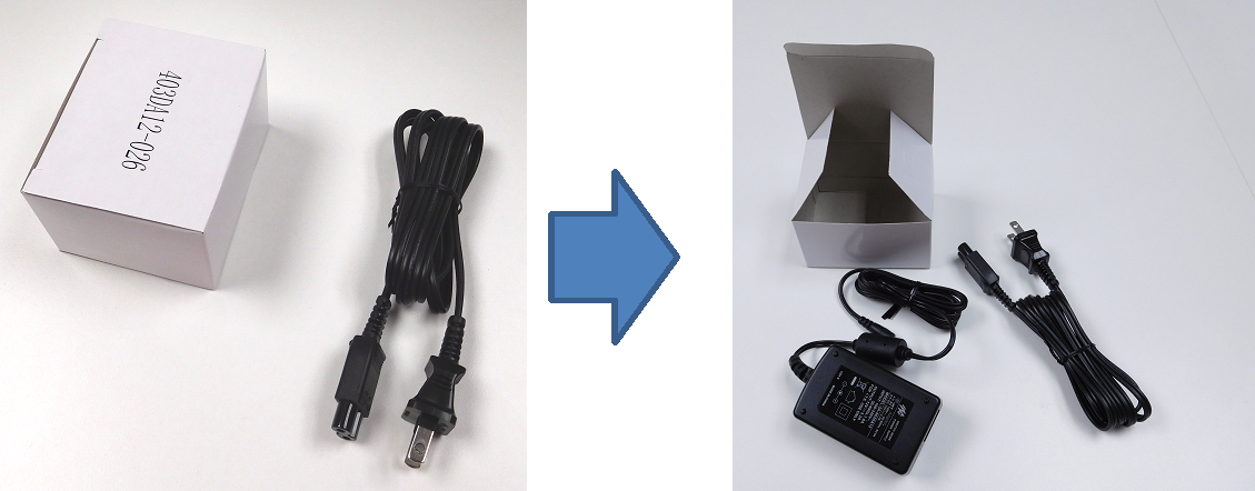 箱の中の中敷きを持って広げ、AC電源を取り出します。
