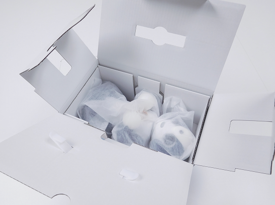 箱の中の中敷きを持って広げ、AC電源を取り出します。