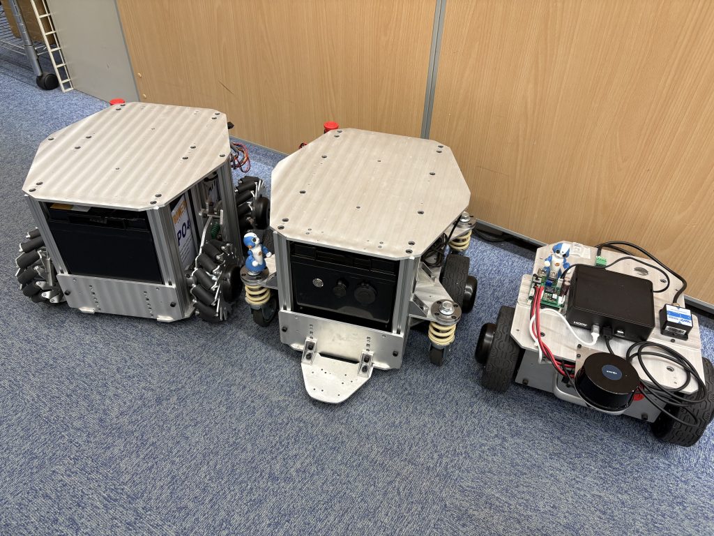 研究開発用の台車ロボットには、さまざまな種類やオプションをご用意しています。 タイヤの形状、配置だったり、バッテリーの容量だったり可搬重量だったり……色々あります。