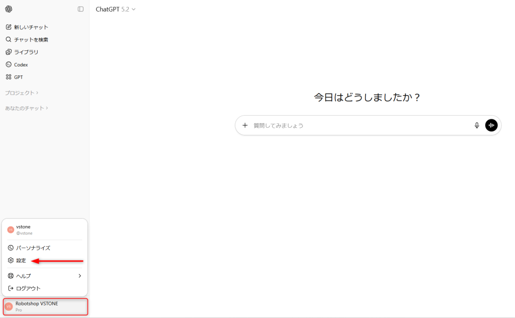 1.ChatGPT の プロフィールアイコン → 設定 を開く