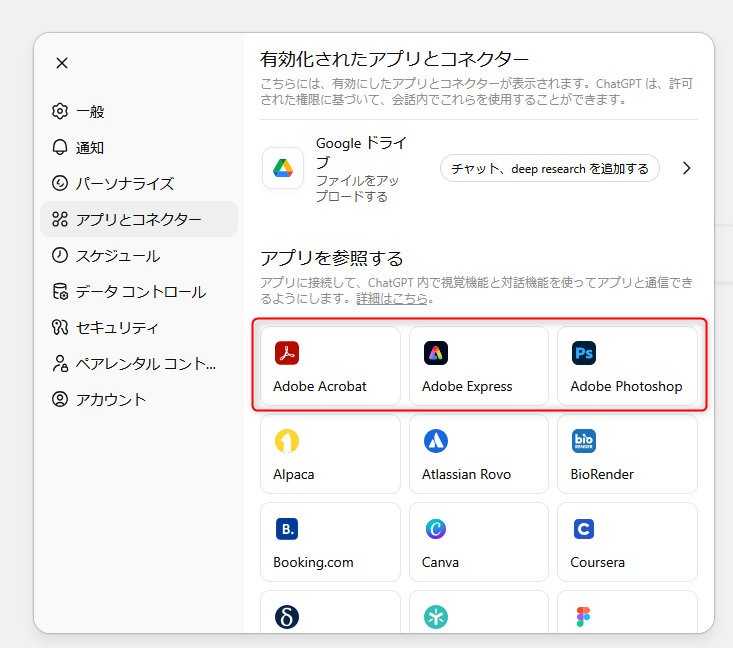 - Photoshop、Express、Acrobatが、ChatGPTの中から直接利用可能