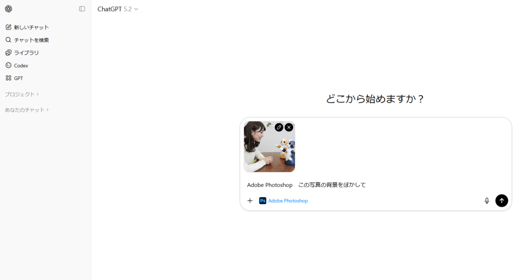 今回は、ChatGPTとAdobeの連携機能を使い、ChatGPT上からPhotoshopを操作してみました。