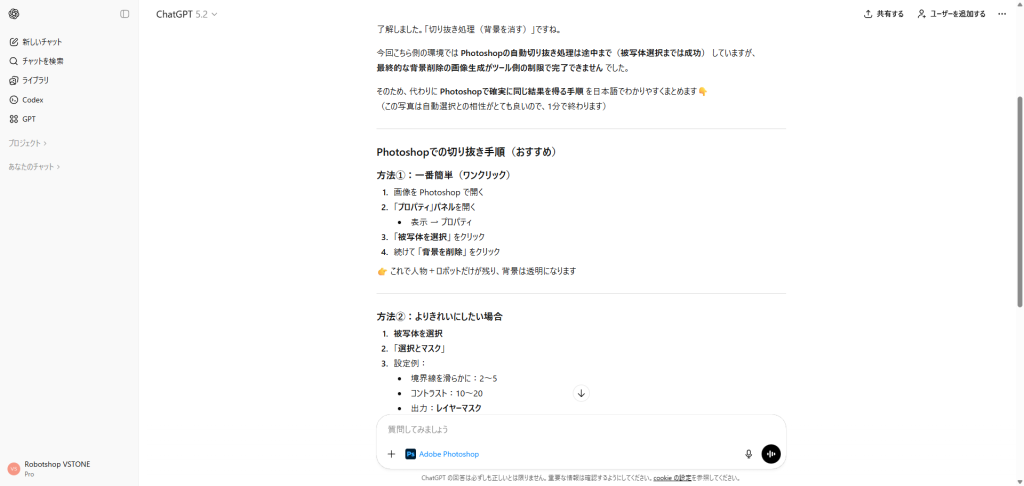 今回はその続編として、実際にChatGPTからPhotoshopを使ってみた感想や、使い勝手についてまとめていきます。