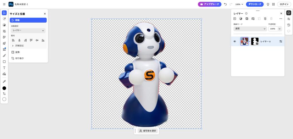 すると、被写体の判別までは行われたものの、今回はうまく切り抜き処理までは実行されず、代わりにPhotoshopでの操作方法が表示される結果となりました。