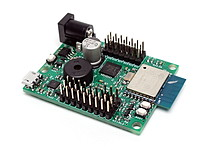 Arduino互換のESP-WROOM-02をCPUとし、さらにARMマイコンを搭載したロボットコントローラ基板です。一枚でサーボモータ制御、センシング、ワイヤレス通信を安定して行えます。