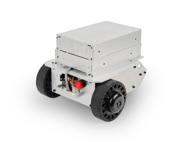 本製品は、各種研究開発用大型台車ロボットのオプション品で、対応ロボットをROSで制御するためのPCと取り付け金具から構成されています。