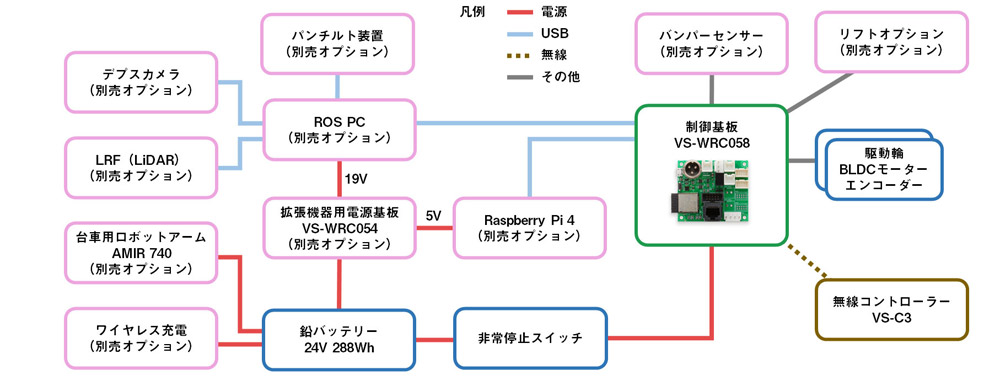 ※LRF(LiDAR)とデプスカメラは、Raspberry Pi 4に接続することも可能です。