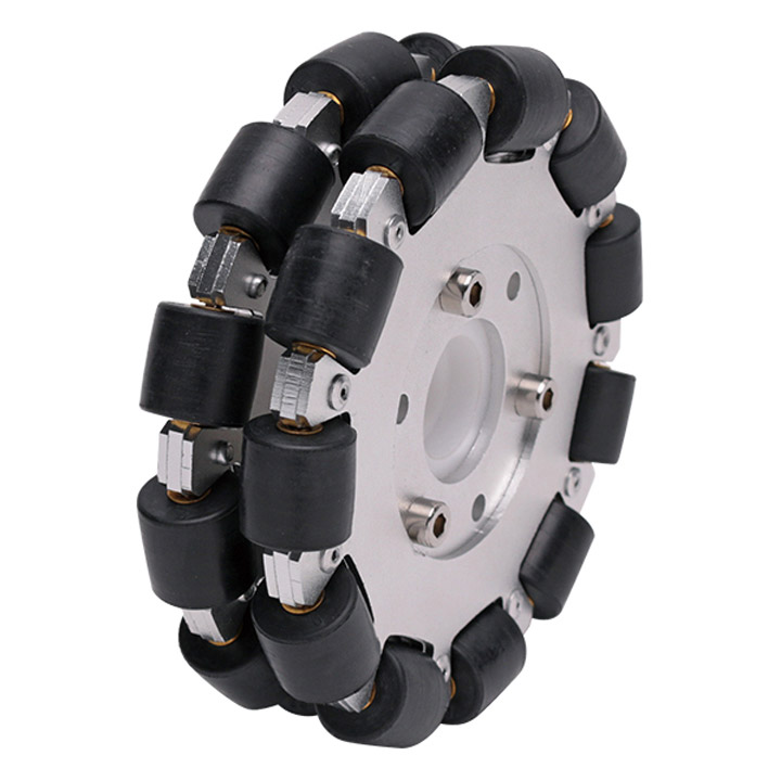 本体(ホイール)の回転(前後の動き)と横方向への移動(左右の動き)のコンビネーションによって多方向への動きを可能とする車輪です。 様々な使用環境に対応可能なローラーが搭載されており、通常の車輪の代替としてはもちろん、ローラーを利用して横移動も可能です。 グリップ性の高いゴム製ローラーを搭載したことにより、高い制御性能を得ることができます。 ロボット工学分野での応用、台車・運送コンベヤー、さらには旅行かばんなどにもお使いいただけます。