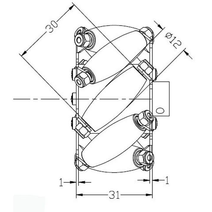 各ホイールには、車軸に対して45度の角度で、小型ローラーが配置されています。