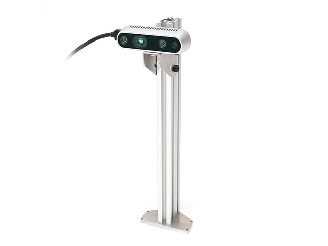 「デプスカメラオプション」は、弊社製の研究開発用台車ロボットに、深度情報を含んだフルカラーRGB画像が取得できるステレオカメラ(RGB-Dカメラ)を搭載する、台車ロボットご注文時の有償オプションです。デプスカメラオプションを用いることで、通常のRGB画像と合わせて深度情報が得られるため、自己位置推定やロボットによるマッピングを高速、高精度に実現可能です。