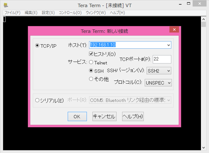 (1)Sotaと同一のネットワーク内のPC等からSSHクライアントソフトウェアを起動させます。SSHクライアントソフトウェアには「PuTTY」や「TeraTerm」等があります。下記URLよりダウンロード可能です。