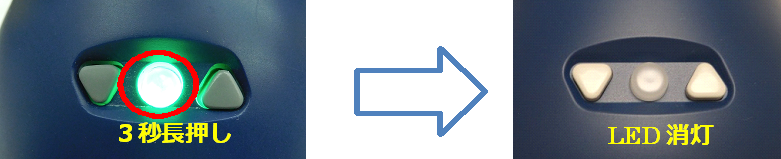 ○ボタンを3秒間程度長押しします。「おやすみなさい」という音声が再生され、シャットダウンします。正しくシャットダウンするとLEDが消灯します。