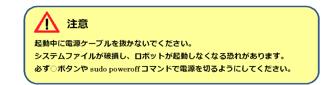 電源の切り方は、チュートリアル1~とりあえず動かしてみよう~?をご参照ください。