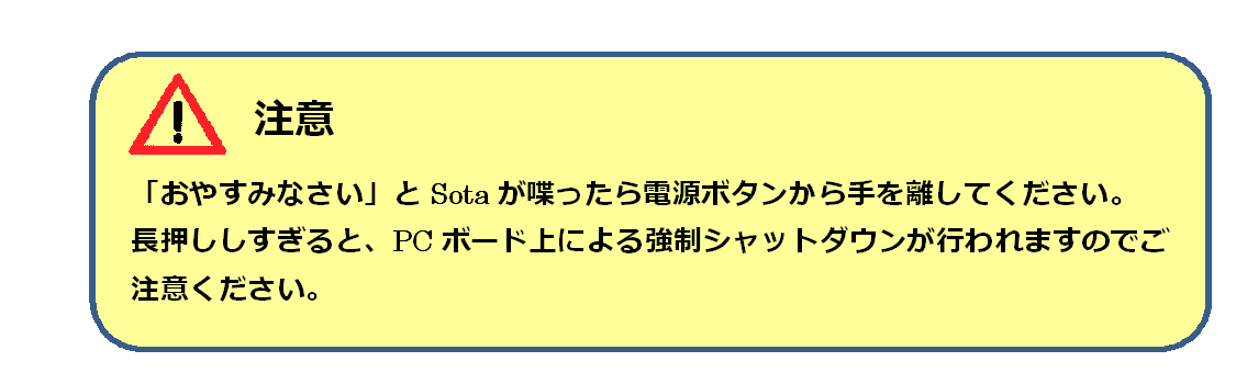 本チュートリアルを進む前に、必ずSotaの電源がOFFになっていることを確認してください。