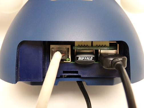 (2)microB USBケーブルをロボットの側面側にあるmicroB USBコネクタへ接続します。