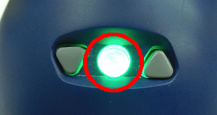 ○ボタンを押します。電源が入ると○ボタンのLEDが緑色に点灯します。正しく起動すると「おはよう」という音声が再生されます。